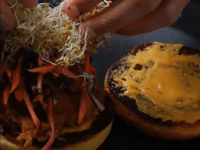 • Top with coleslaw + microgreens