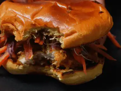 To finish, you can go classic with pickles, or make it punchier with jalapeños. The slaw is simple (cabbage + carrot + light mayo + vinegar), the sauce is a quick stir-together, and everything comes together into that perfect crunchy-creamy bite. Serve it with fries, wedges, or even a simple salad.
