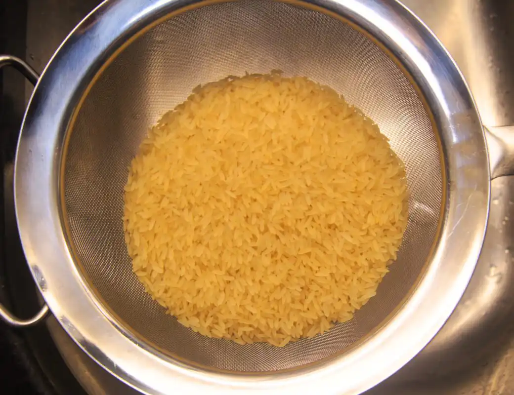 Rinse the rice thoroughly using a fine-mesh sieve.